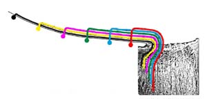 Když exkavace zasahuje až okraji terče dochází k poškození vláken, která vedou až do temporální části sítnice k tělům gangliových buněk, uloženým v sousedství horizontálního švu. Poškození těchto buněk a jejich axonů se projeví nasálním skokem s arkuátním Bjerumovým skotomem.