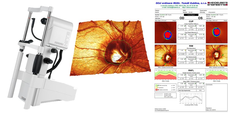 Jedná se o konfokální skenovací laserový mikroskop, který vytváří počítačový 3D otisk /s přesností 10nm/ zrakového nervu a poznává jeho poškození zeleným zákalem. Je považován za zlatý standard pro diagnostiku glaukomu.