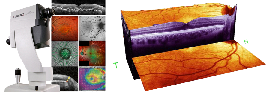 komplexní vyšetření přístroji HRT3, SPECTRALIS III , ORA